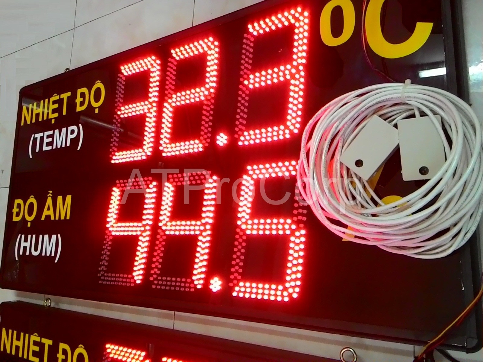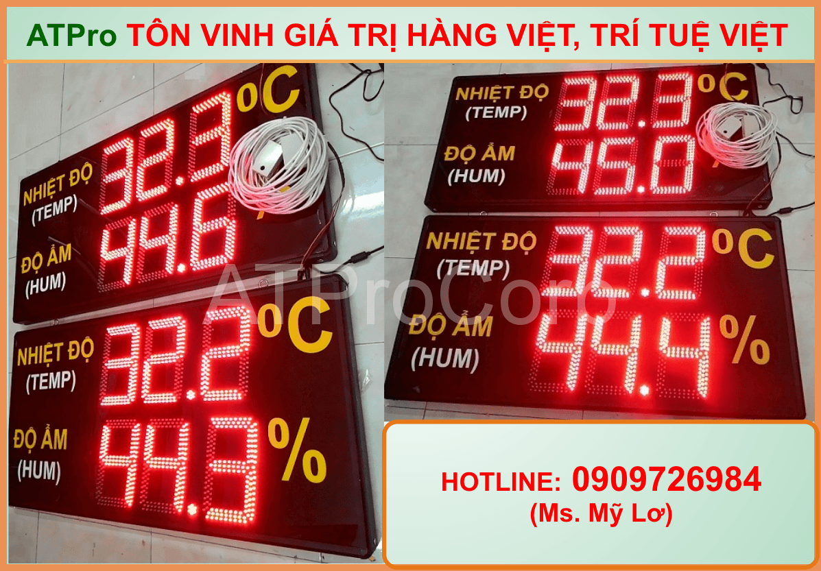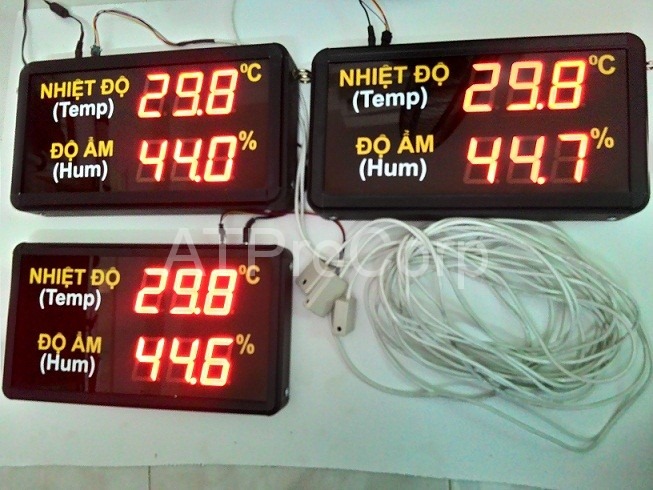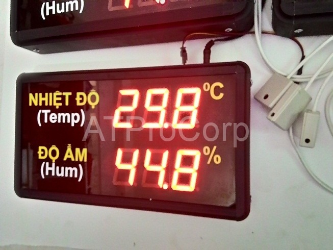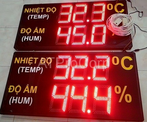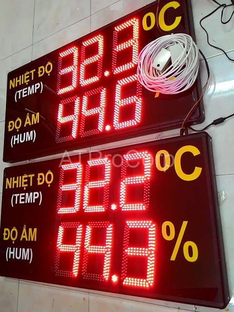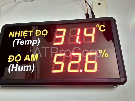 -Số hiển thị bằng LED đơn, kích thước số: 14cm x 20cm, màu đỏ, hiển thị nhiệt độ độ ẩm