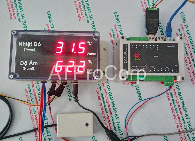 - Điều khiển : 2 ngõ ra relay điều khiển riêng biệt cho nhiệt độ, độ ẩm - Giao tiếp: Modbus RTU Rs485 - Sử dụng PLCPi để xem giá trị thời gian thực, xuất báo cáo, alarm, cấu hình cho hệ thống giám sát nhiệt độ độ ẩm.